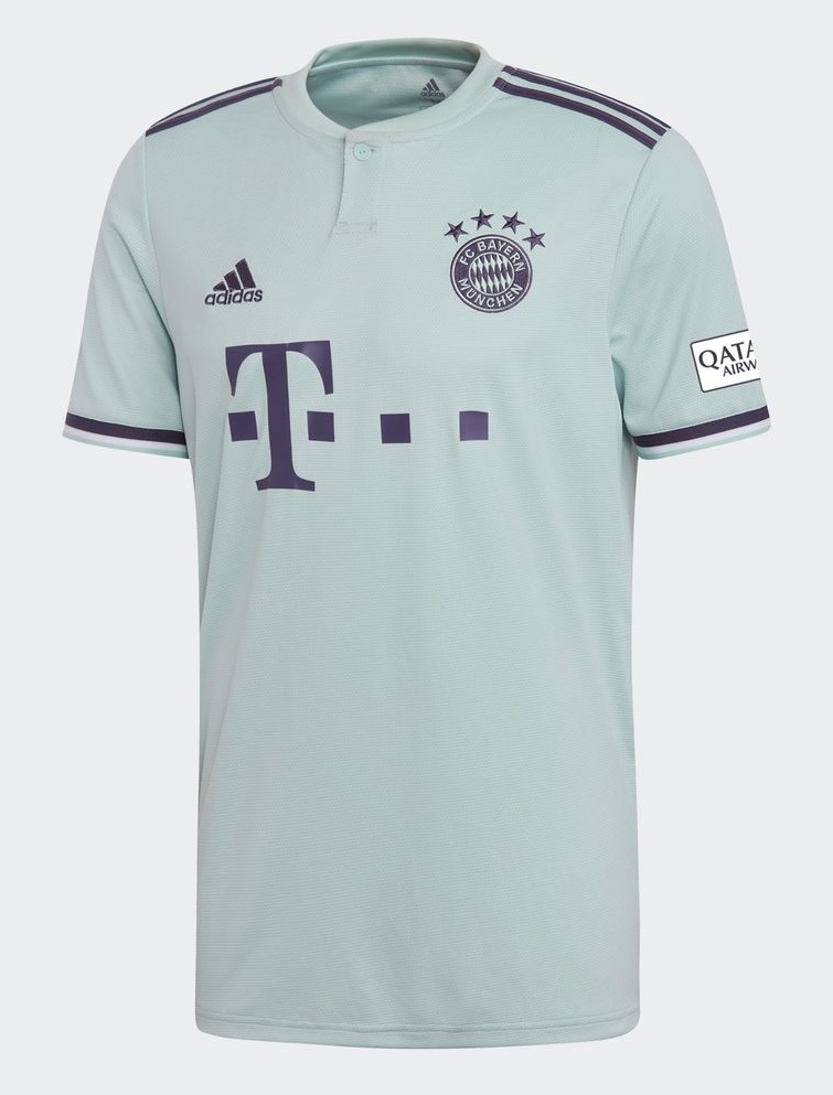 Voor dit nieuwe Adidas Bayern Munchen uitshirt 2018 is gekozen voor een lichte pastelkleur. In combinatie met de paarse details een prima keuze. De bovenkant heeft een ronde open hals dat afsluitbaar is met een knoopje. De bekende Adidas strepen zien we in het paars terug op de schouders. Rond de onderkant van de mouwen zit een dun randje in de kleuren paars en wit. Op de mouw zien we de bedrukking van subsponsor Qatar Airways. Het Bayern logo met de vier sterren mag niet ontbreken.