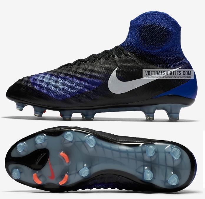 Op de hak van de schoen staat van boven naar beneden de naam Magista. De schoen heeft een oranje inlegzool, eveneens met de naam Magista. De schoen is afgewerkt met zwarte veters. Bestel de nieuwste voetbalschoenen 2017 uit het Nike Dark Lightning Pack na lancering hier online.