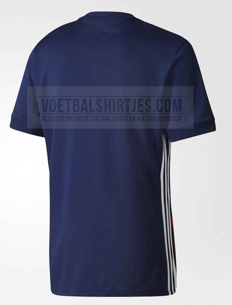 De achterkant van dit Olympique Lyon uitshirt 17/18 is volledig blauw. Hier komt uiteraard nog de bedrukking van naam en rugnummer op te staan. Je koopt dit nieuwe voetbalshirt na lancering hier online.